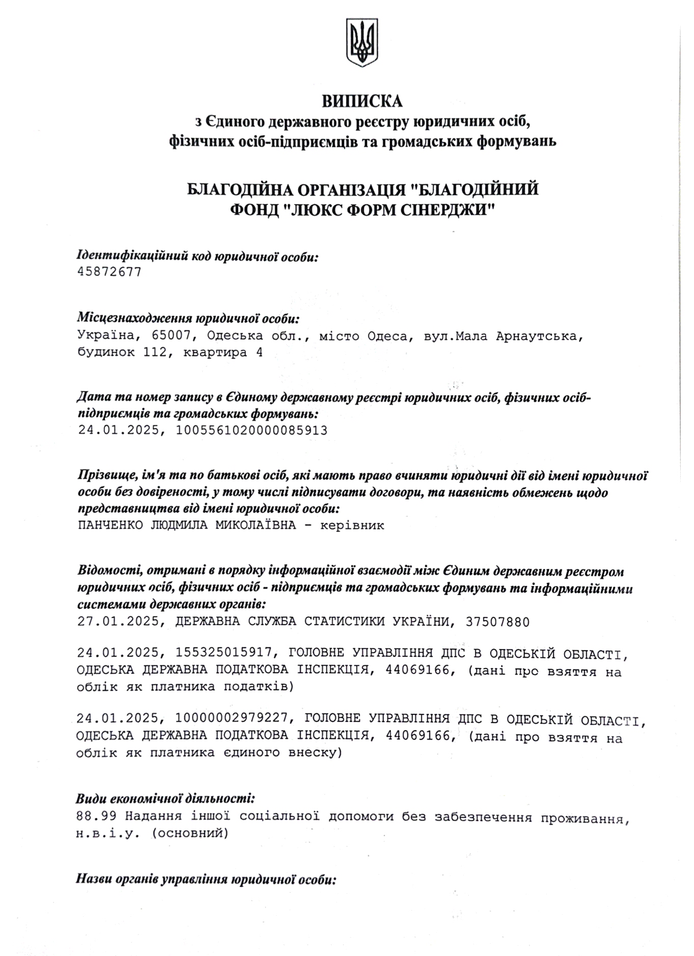 Lux Form Synergy – це команда, яка об'єднує досвід, інновації та якість у виробництві уніформи та спецодягу. З 2012 року ми створюємо продукцію, яка відповідає найвищим стандартам безпеки, комфорту та стилю. Наші вироби служать не лише бізнесу та державним установам, а й тим, хтопотребує допомоги.
